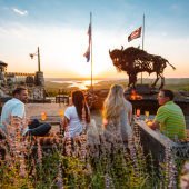 This cozy spot located on the lower level of Osage Restaurant is the perfect place to relax after a game of golf, celebrate a special event or simply enjoy a drink. Step out onto the stone patio for breathtaking views and watch the sunset ceremony (offered seasonally), complete with a bagpipe performance and the firing of a Civil War cannon.